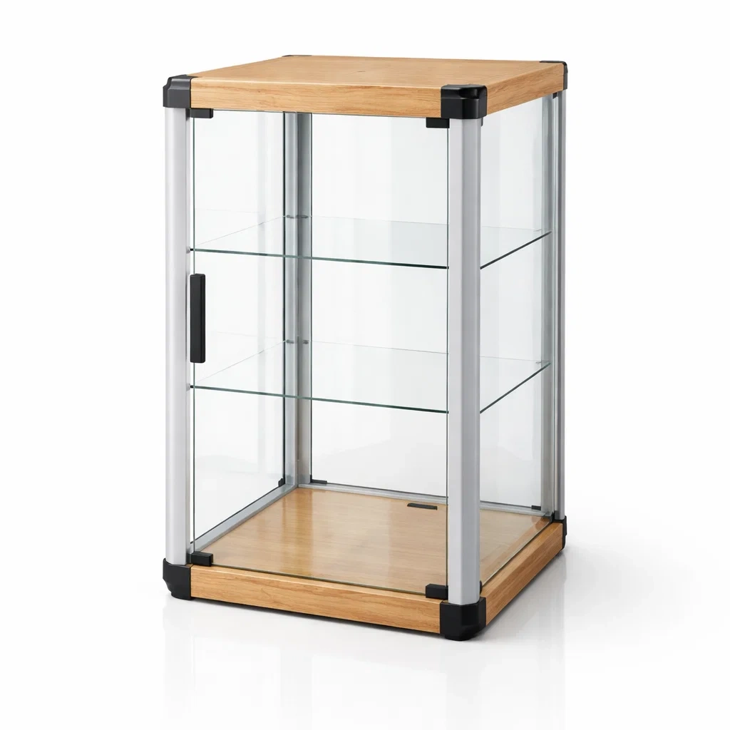 Vetrina in vetro temperato e legno di rovere con 3 ripiani regolabili 40x30x60 cm