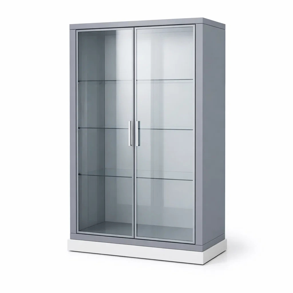 Vetrina in legno con ante in vetro temperato e rivestimento in compensato