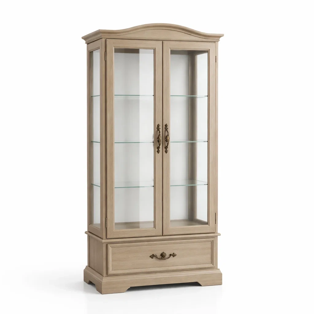 Vetrina in legno e vetro temperato con cassetto e ripiani