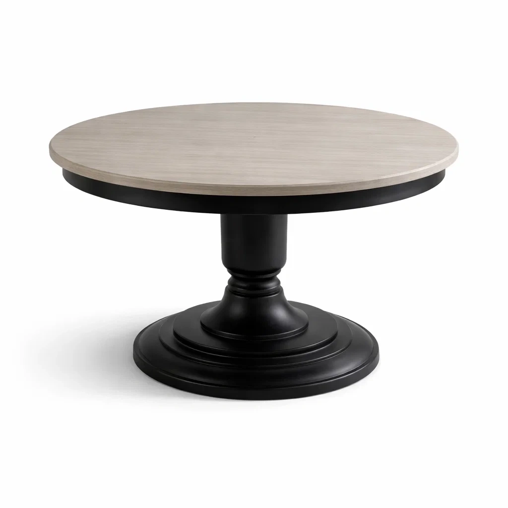 Tavolo rotondo per interni con diametro di 120 cm e altezza di 75 cm.