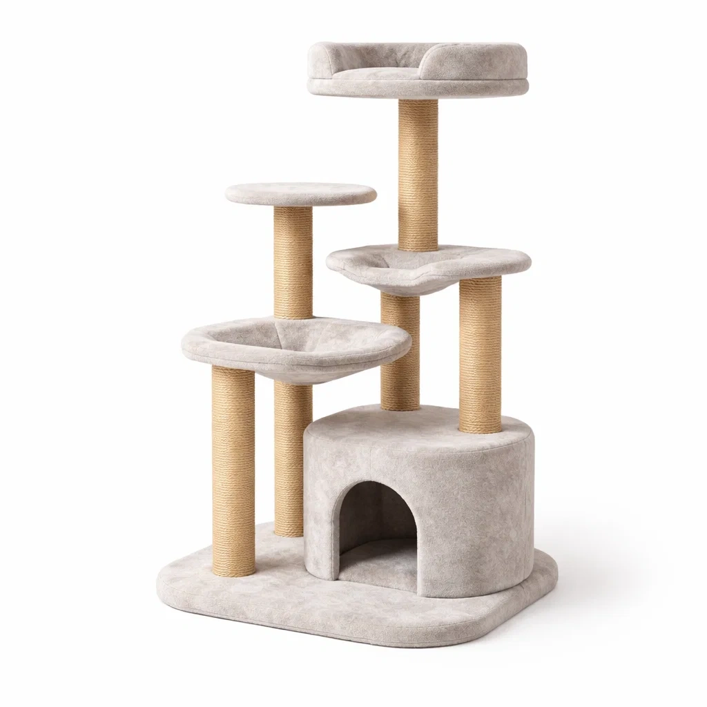 Materiale: struttura in MDF, rivestimento in poliestere morbido, pali con corda di sisal